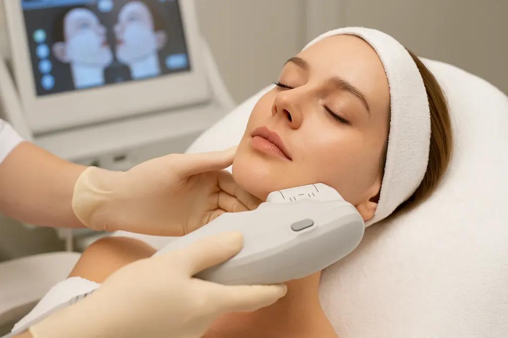 Terapia HIFU (High-Intensity Focused Ultrasound) este o procedură estetică non-invazivă care folosește energia ultrasunetelor pentru a stimula producția naturală de colagen în piele. Prin emiterea de unde ultrasonice focalizate, HIFU pătrunde în straturile profunde ale dermului, acolo unde colagenul își pierde din densitate odată cu trecerea anilor. Rezultatul? Un efect de lifting vizibil, o piele mai fermă și un contur facial mai bine definit – fără injecții sau chirurgie.